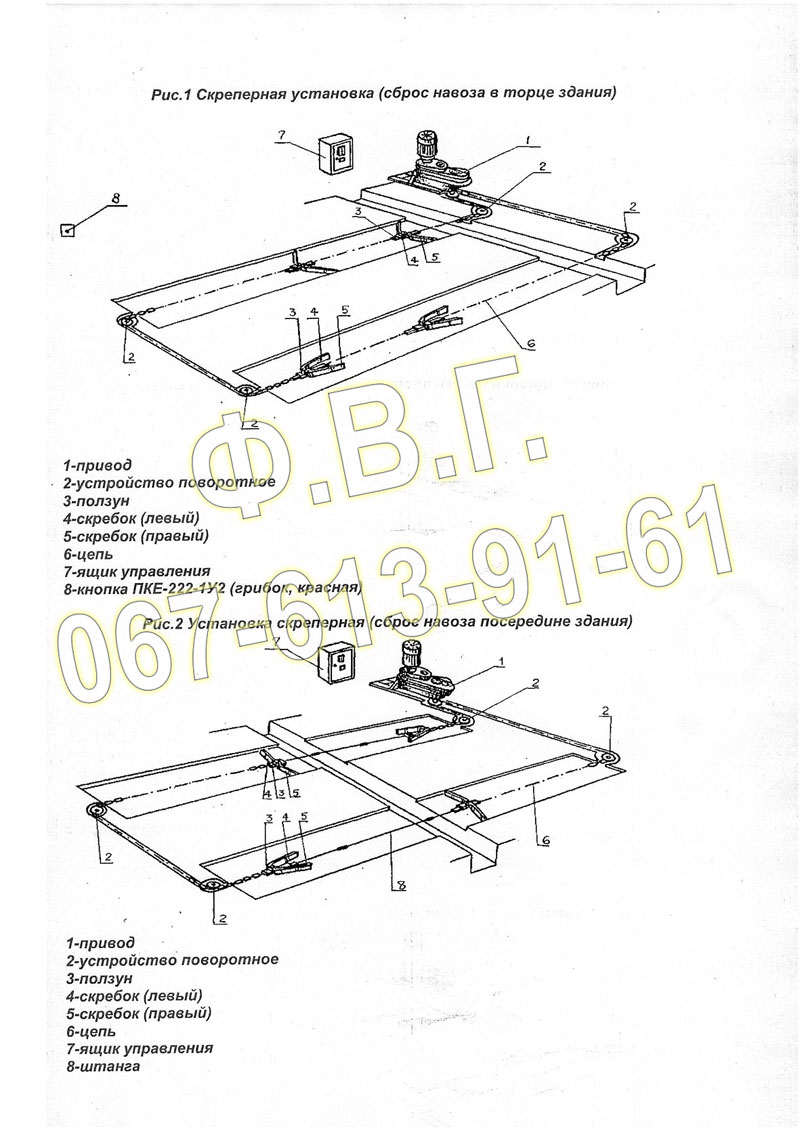 4. Повун з натяжним пристроєм– для натягування ланцюга та кріплення на нього скребків-2шт. в комплекті.