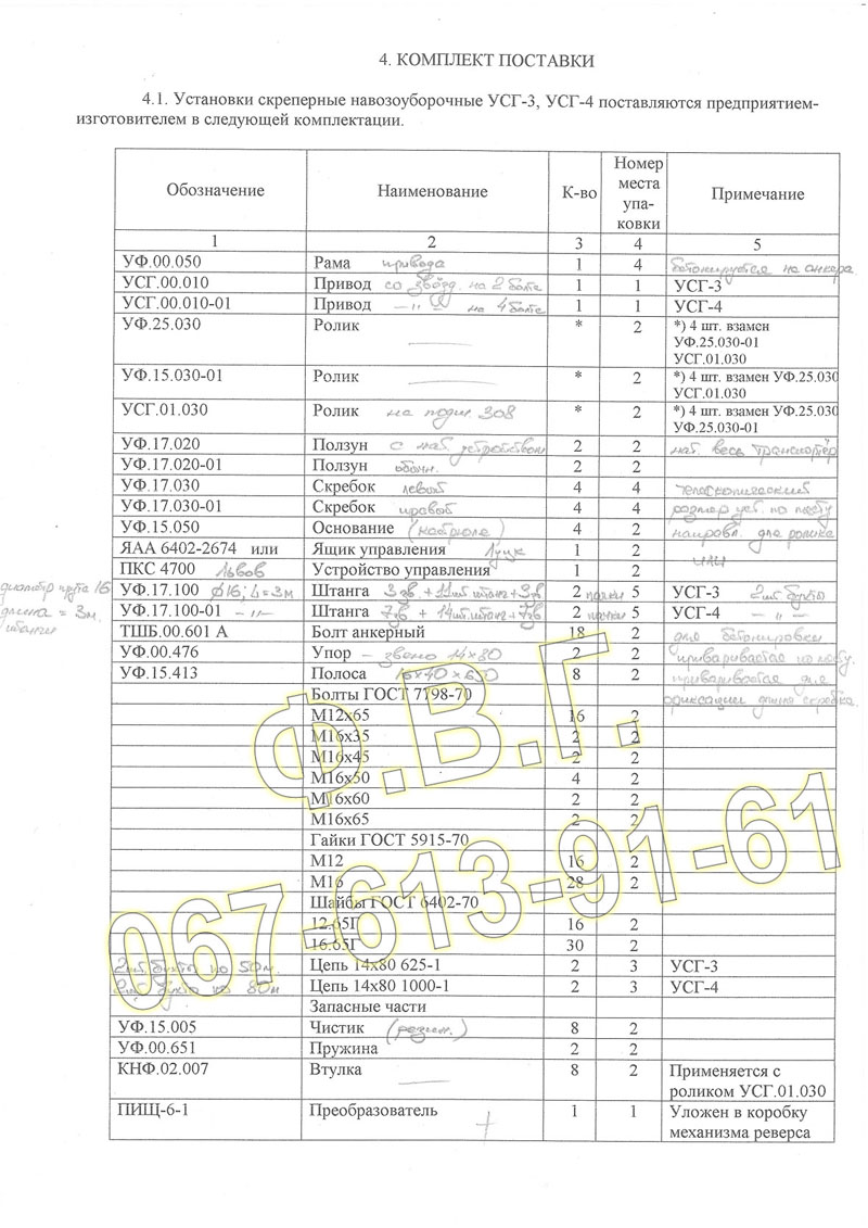 Для УСГ-4: 14шт. штанг по 3м.-2шт. бухти.